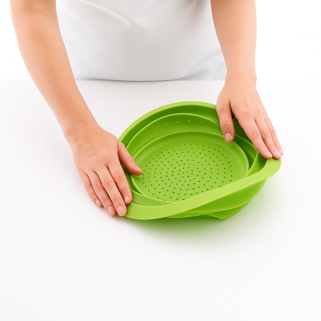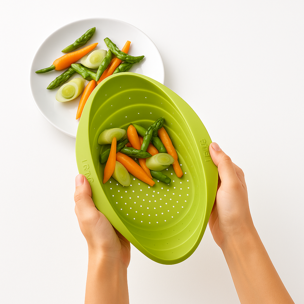 Lava frutas, verduras o pasta de forma práctica con el escurridor plegable Lékué. ¡Ligero, funcional y cómodo! Se pliega en segundos para ahorrar espacio en tu cocina. Ideal para el uso diario.
