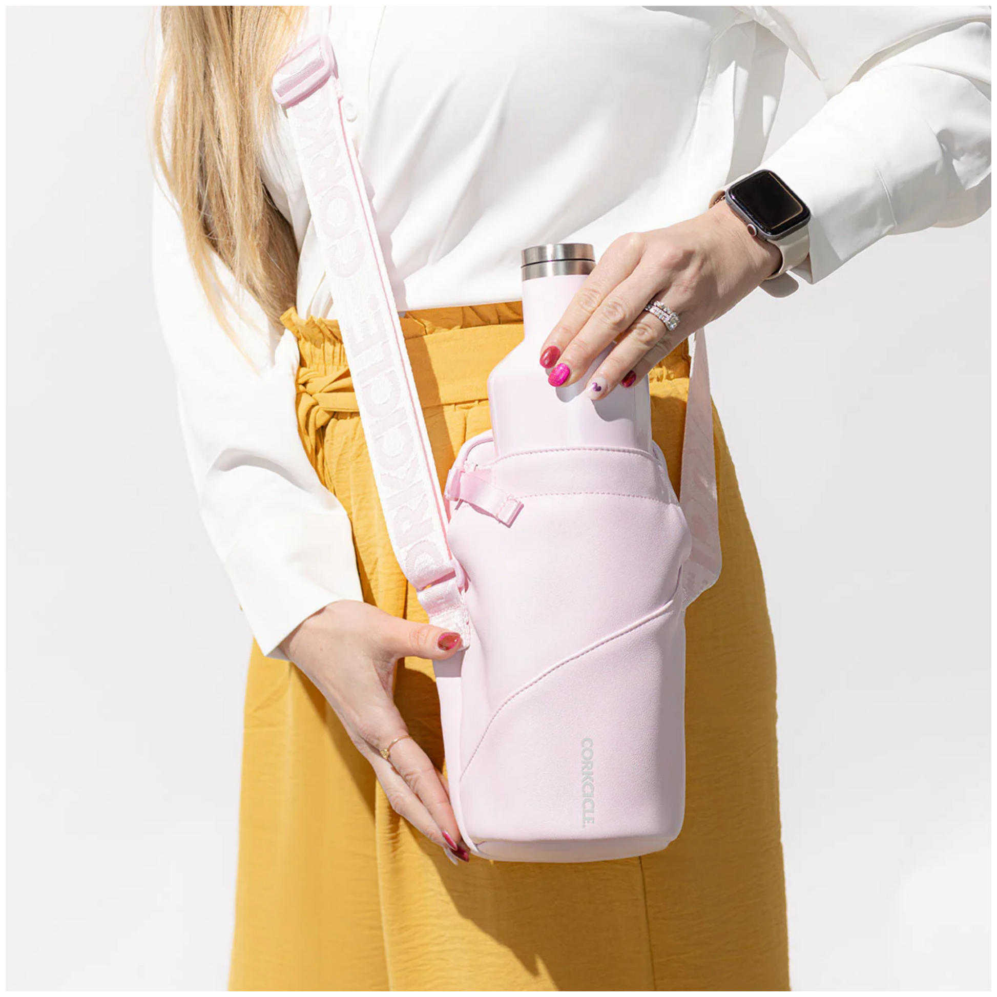 El Sport Sling de Corkcicle en cuero vegano es ideal para llevar tu botella y esenciales con las manos libres y mucho estilo.